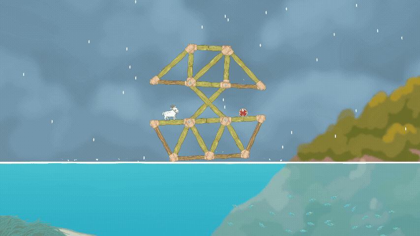 A wacky physics puzzler where you (sometimes haphazardly) engineer rafts that float a goat and his "friends" across the seas. Use various materials to keep them dry and sane.